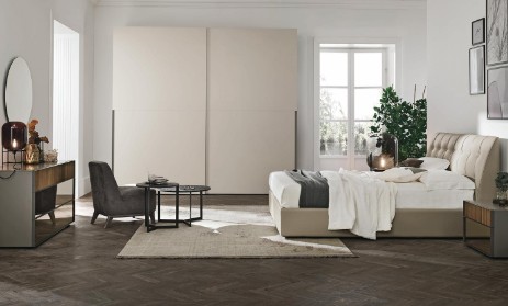 Più di un letto, Halifax è un vero e proprio elemento d'arredo, capace di attirare l'attenzione su di sè. Diversi elementi, forme e materiali disegnano e compongono la testiera, mentre la luce ne esalta la particolarità.