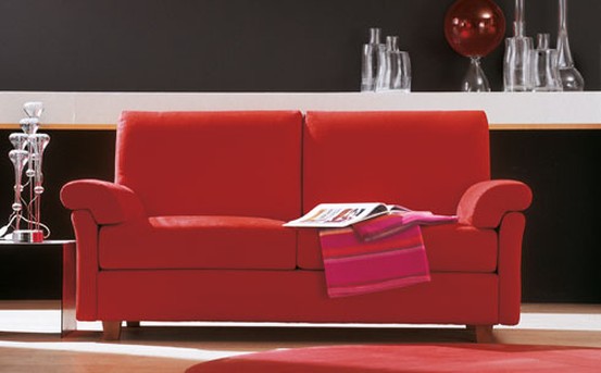 La caratteristica che lo rende unico è la sua profondità. Occupa solamente 79 cm. Ideale per ottimizzare lo spazio di piccoli ambienti senza rinunciare al comfort. Struttura in legno massello di abete, pannelli di stratificato di legno e faesite di tamponamento, braccioli in pannelli di particelle di legno. Rivestito da poliuretano da 8 mm termolegato a tessuto indemagliabile grigio.